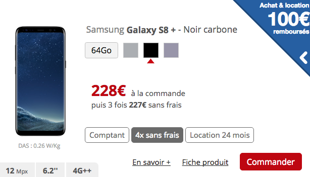 Ainsi pour tout achat ou location d’un Galaxy S8, S8+ ou encore Note 8, 100 euros sont remboursés. De la même façon, les Galaxy S7 et S7 Edge sont remboursés à hauteur de 70 euros. Comme d’habitude pour ce genre d’offre, il faudra remplir un bulletin de participation et demander le remboursement une fois le smartphone reçu.