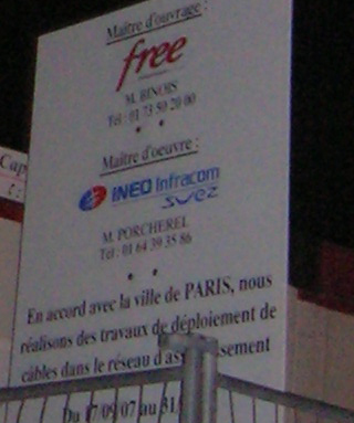 C’est ainsi que sur la rue longeant le jardin des Tuileries (au centre de Paris), on peut voir un chantier avec pour maître d’ouvrage Free Infrastructure :