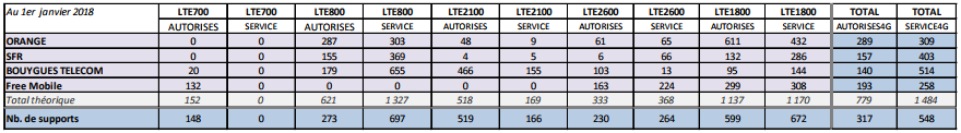 Le bilan des sites 4G mis en service en métropole s’établit comme suit :