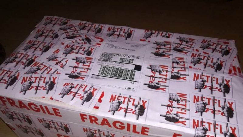 Cet abonné Freebox en a gros sur la patate. Visiblement lassé d’avoir affaire à des problèmes de débits sur Netflix, celui-ci a décidé de résilier son abonnement et de restituer son équipement avec un message caustique à l’intention du FAI de Xavier Niel. Sur le colis de renvoi figure une kyrielle d’autocollants illustrant deux mains derrière les barreaux ainsi que le logo de Free et de Netflix en toile de fond.