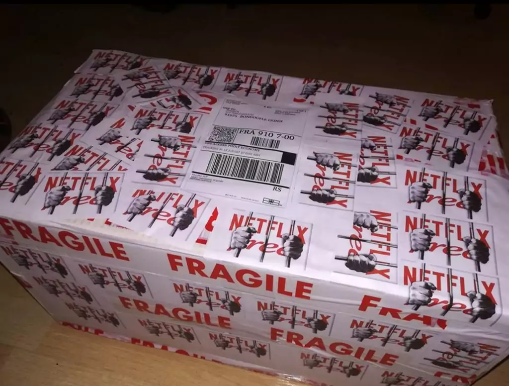 Cet abonné Freebox en a gros sur la patate. Visiblement lassé d’avoir affaire à des problèmes de débits sur Netflix, celui-ci a décidé de résilier son abonnement et de restituer son équipement avec un message caustique à l’intention du FAI de Xavier Niel. Sur le colis de renvoi figure une kyrielle d’autocollants illustrant deux mains derrière les barreaux ainsi que le logo de Free et de Netflix en toile de fond.