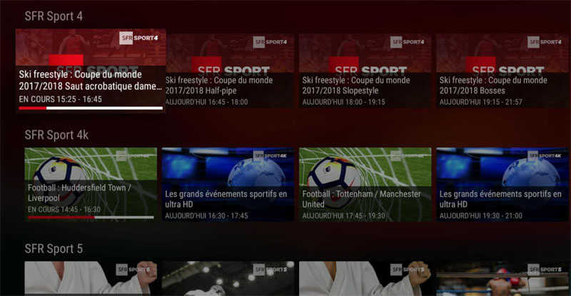 SFR Sport 4 sur l’application de la Freebox Mini 4K
