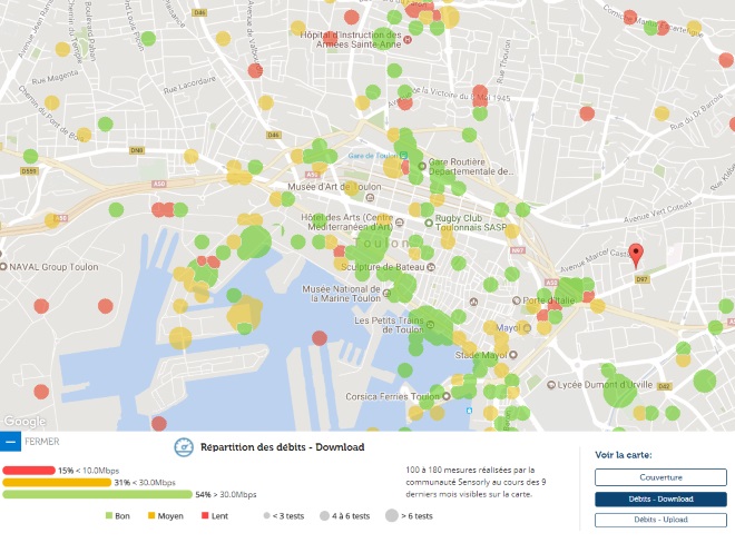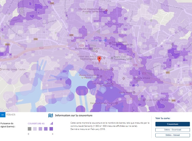 Avec les données de notre partenaire Sensorly, Univers Freebox vous propose un focus sur Toulon, 15ème ville de France par sa population et vous fait découvrir la carte de la couverture du réseau 4G et des débits.