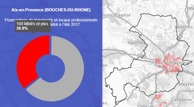 Aujourd’hui, grâce aux données fournis par l’Observatoire France Très Haut Débit, nous vous proposons de découvrir le déploiement du très haut débit pour tous les opérateurs sur la 23ème ville la plus peuplée de France : Aix-en-Provence.
