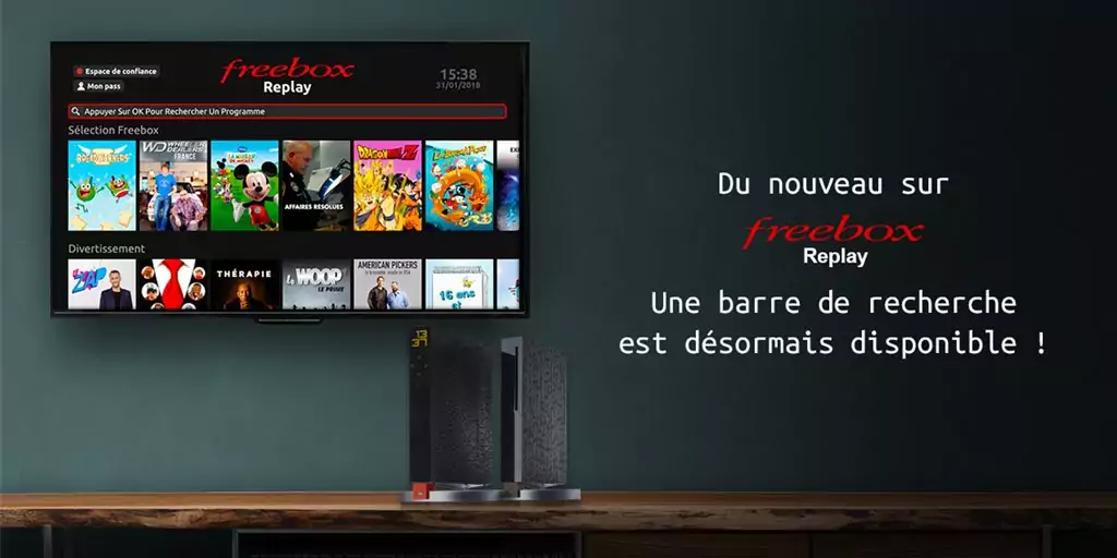 « Retrouvez désormais plus simplement vos contenus préférés grâce à la fonction de recherche présente sur l’accueil de Freebox Replay ! Vous pouvez effectuer vos recherches par titre, nom d’acteur ou par mot clé » indique l’opérateur