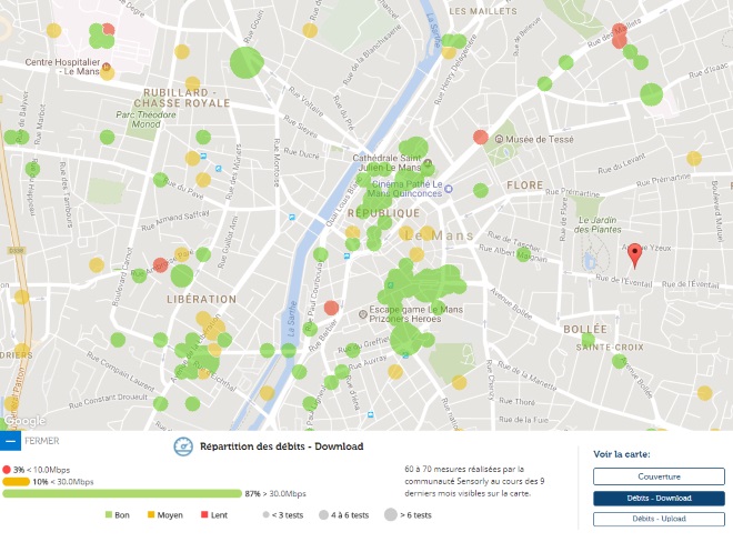 Avec les données de notre partenaire Sensorly, Univers Freebox vous propose un focus sur Le Mans, 22ème ville de France par sa population et vous fait découvrir la carte de la couverture du réseau 4G et des débits.