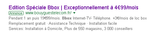 Or, en plus des 4,99€/mois, mis en avant sur le site de Bouygues Télécom ou encore sur les annonces sponsorisées sur Google, il faut ajouter 3€/mois de location de box, soit 7,99€/mois au total, durant la 1ère année. Cela complique donc la comparaison des tarifs chez les différents opérateurs.