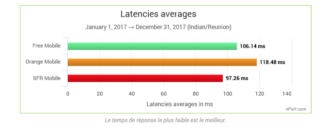 S’agissant du temps de réponse, c’est SFR qui se démarque sur l’île et devance Free de 8,88 ms et Orange de 21,22 ms.