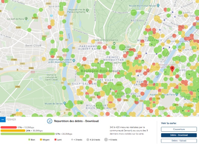 Avec les données de notre partenaire Sensorly, Univers Freebox vous propose un focus sur Boulogne-Billancourt, 31ème ville de France par sa population et vous fait découvrir la carte de la couverture du réseau 4G et des débits.