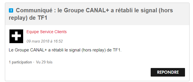 Canal+ vient d’annoncer de façon lapidaire que c’est désormais chose faite : « Le Groupe CANAL+ a rétabli le signal (hors replay) de TF1 » indique-t-il sur sa page d’assistance.