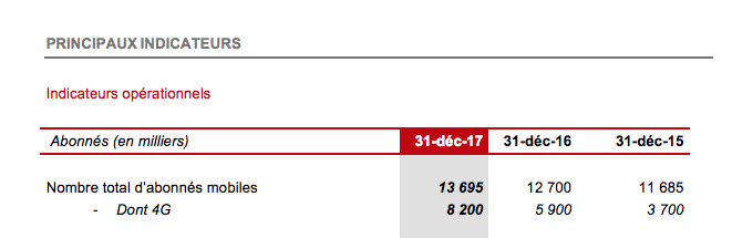 • Finalisation de la migration des sites 4G en 1 800MHz courant 2018.