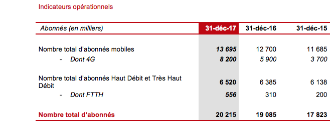 • Hausse de la base d’abonnés FTTH de 300 000 à 500 000 abonnés par an dès 2018 ;