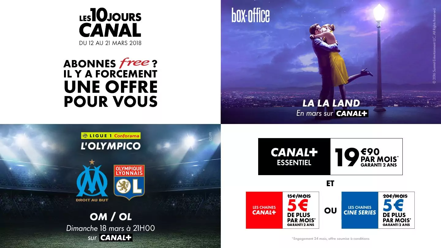 Canal+ a lancé deux offres promotionnelles ponctuelles sur la Freebox (mais également les autres box) valables jusqu’au 21 mars, dans le cadre des "10 jours Canal".