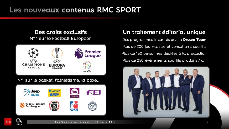 SFR change de stratégie en ce qui concerne les contenus. Après avoir tenté une stratégie de convergence des tuyaux et des contenus avec l’achat de droits exclusifs de diffusion de la Ligue des Champions et de la Ligue Europa, finalement SFR change son fusil d’épaule.