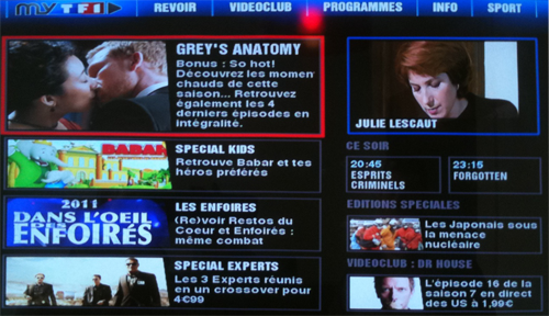 Le service de replay MyTF1 débarquait sur les Freebox HD et se faisait attendre sur la Freebox Révolution. Il proposait un service de VOD ainsi les coulisses des émissions, un service de météo, les résultats sportifs, des bonus inédits.