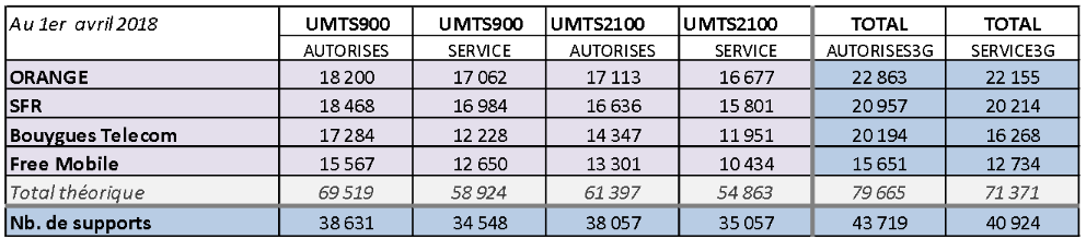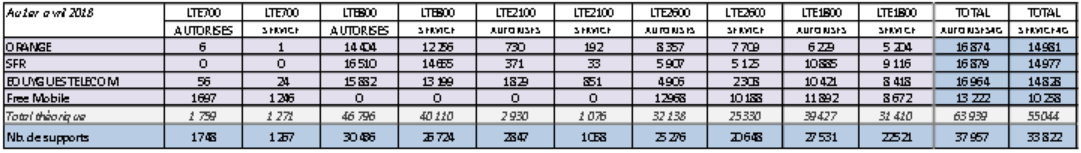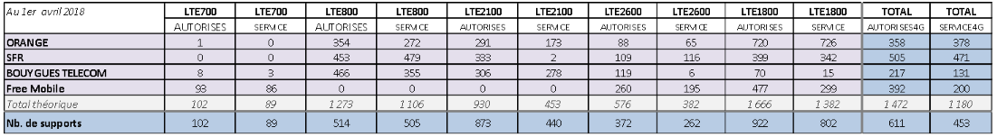 Le bilan des sites 4G mis en service en métropole s’établit comme suit :