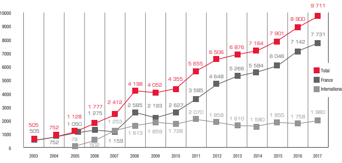 Iliad vient de communiquer sur l’évolution de ses effectifs au cours de l’exercice 2017. Le Groupe a poursuivi sa politique de recrutements, en privilégiant l’accroissement de ses effectifs en France principalement mais également à l’international.