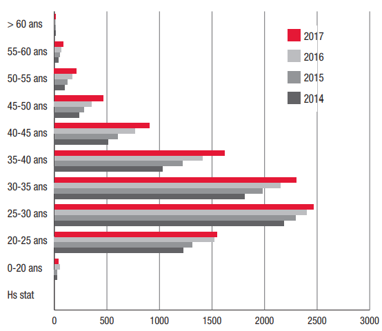 Ainsi, ce sont plus de 6 000 personnes, soit 62 % des ressources internes, qui sont dédiées à la Relation abonné. Logiquement, cette proportion est en recul de 6 points au cours de l’exercice 2017 du fait notamment des recrutements importants d’effectifs dédiés au déploiement du réseau FTTH du Groupe.