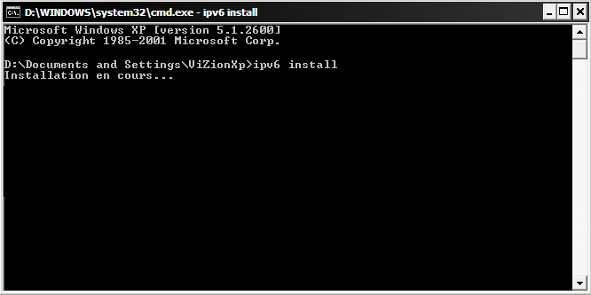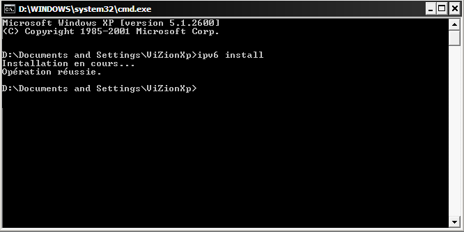 L’installation de l’iPv6 sur votre ordinateur est réussie.