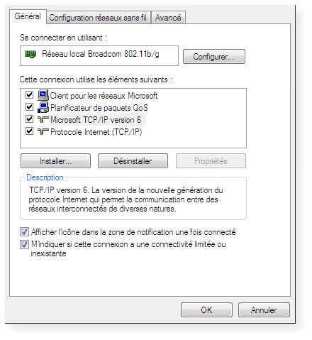 Remarque : Sous Windows Vista, inutile d’installer l’IPv6 puisqu’il est installé et activé par défaut.