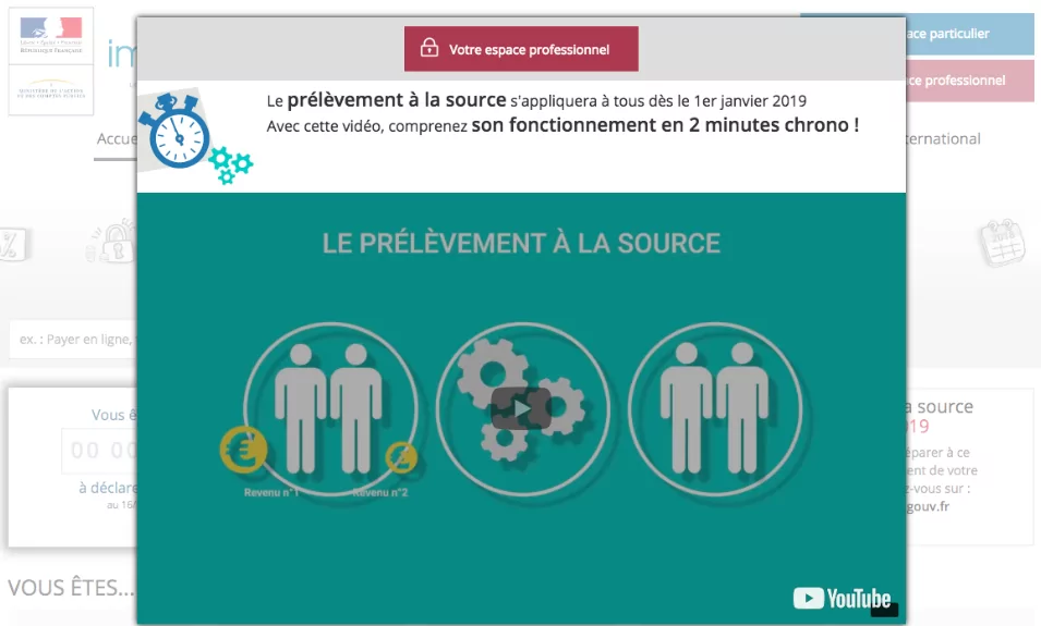 L’enfer est pavé de bonnes intentions. Dans un souci de pédagogie le site des impôts impose le visionnage d’une vidéo de présentation du prélèvement à la source… hébergée sur YouTube.