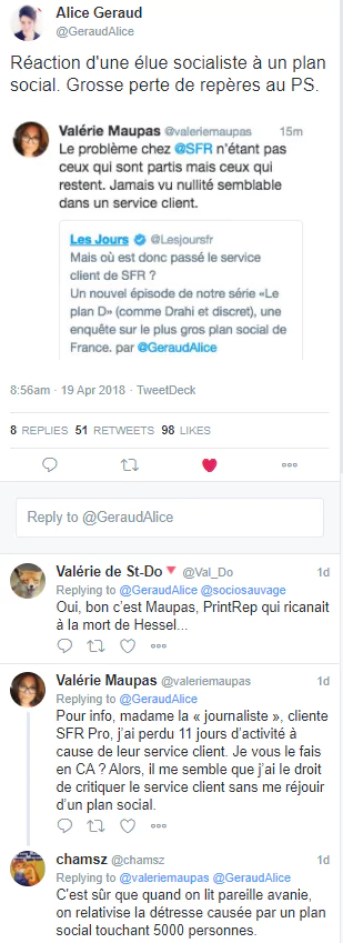 La joute verbale du jour. Quand une journaliste envoie une pique à une élue socialiste au sujet d’un de ses tweets sur SFR… la réponse ne se fait jamais attendre.