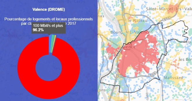 Grâce à la première carte on peut voir que la ville de Valence est couverte à 96.2% par le très haut débit.