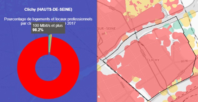 Aujourd’hui, grâce aux données fournis par l’Observatoire France Très Haut Débit, nous vous proposons de découvrir le déploiement du très haut débit pour tous les opérateurs sur la 89ème ville la plus peuplée de France : Clichy.