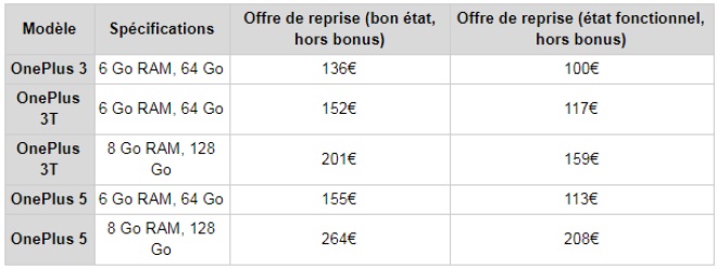 Pour le moment, seuls les tarifs de reprise des appareils OnePlus sont connus. Les mobiles Samsung ou Apple par exemple, pourront bénéficier de cette offre, mais il va falloir patienter afin de connaitre leurs conditions et prix de reprise.