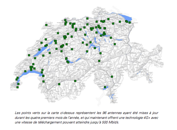 Ainsi entre janvier et avril, Salt a mis à jour 96 sites mobiles. « Ceux-ci offrent désormais la technologie 4G+ dans de nouvelles localités de toute la Suisse avec « une vitesse de téléchargement pouvant atteindre jusqu’à 500 Mbit/s », informe l’opérateur et d’ajouter que « l’impulsion qui a débuté dans les plus grandes villes suisses telles que Zurich, Bâle, Lugano, Genève, Lausanne et Berne durant l’été 2017 s’est par la suite étendue sur les grands axes, ainsi que dans les zones plus rurales du pays en général. »