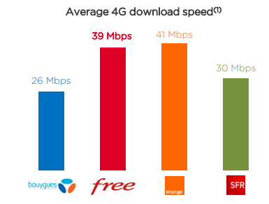 Autre information intéressante concernant le réseau mobile de Free, ce dernier précise que plus de 90% des sites sont fibrés dans les zones urbaines. Free publie par ailleurs les résultats de l’étude nPerf sur les débits 4G au cours du 1er trimestre 2018 dans laquelle il se place en deuxième position derrière Orange.