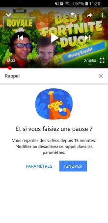 A la fin du délai sélectionné, une notification apparaîtra. Cependant, elle n’interrompra pas la lecture d’une vidéo en cours, c’est à l’utilisateur de choisir s’il veut stopper son activité sur la plateforme ou non. Sur YouTube, une vidéo mène facilement à une autre surtout avec les suggestions. Il est de ce fait très facile de perdre toute notion du temps. Cette nouvelle fonctionnalité a été conçue dans le but d’éviter cela et pour aider les utilisateurs à réguler leur usage de la plateforme vidéo.