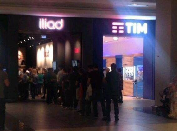 C’est une photo assez étonnante de la situation actuelle chez les opérateurs télécom en Italie qui nous a été envoyée par un lecteur (merci Alexis). On peut y voir, à la même heure, et côte à côte, une boutique TIM (l’opérateur mobile historique) et une boutique Iliad. D’un coté, une longue queue devant la boutique du nouvel opérateur de Xavier Niel, qui a lancé un forfait à 5,99€/mois, et de l’autre TIM, qui n’attire pas les foules. Il faudra maintenant attendre la publication des chiffres d’Iliad en Italie pour savoir si cette photo est représentative des recrutements.