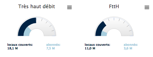 Au 31 mars 2018, 10,9 millions de locaux étaient éligibles aux offres FttH, soit une hausse de 33 % en un an. Au total, à la fin du 1e trimestre 2018, 18,1 millions de locaux étaient éligibles à des services à très haut débit, toutes technologies confondues, dont 12,2 millions en dehors des zones très denses.
