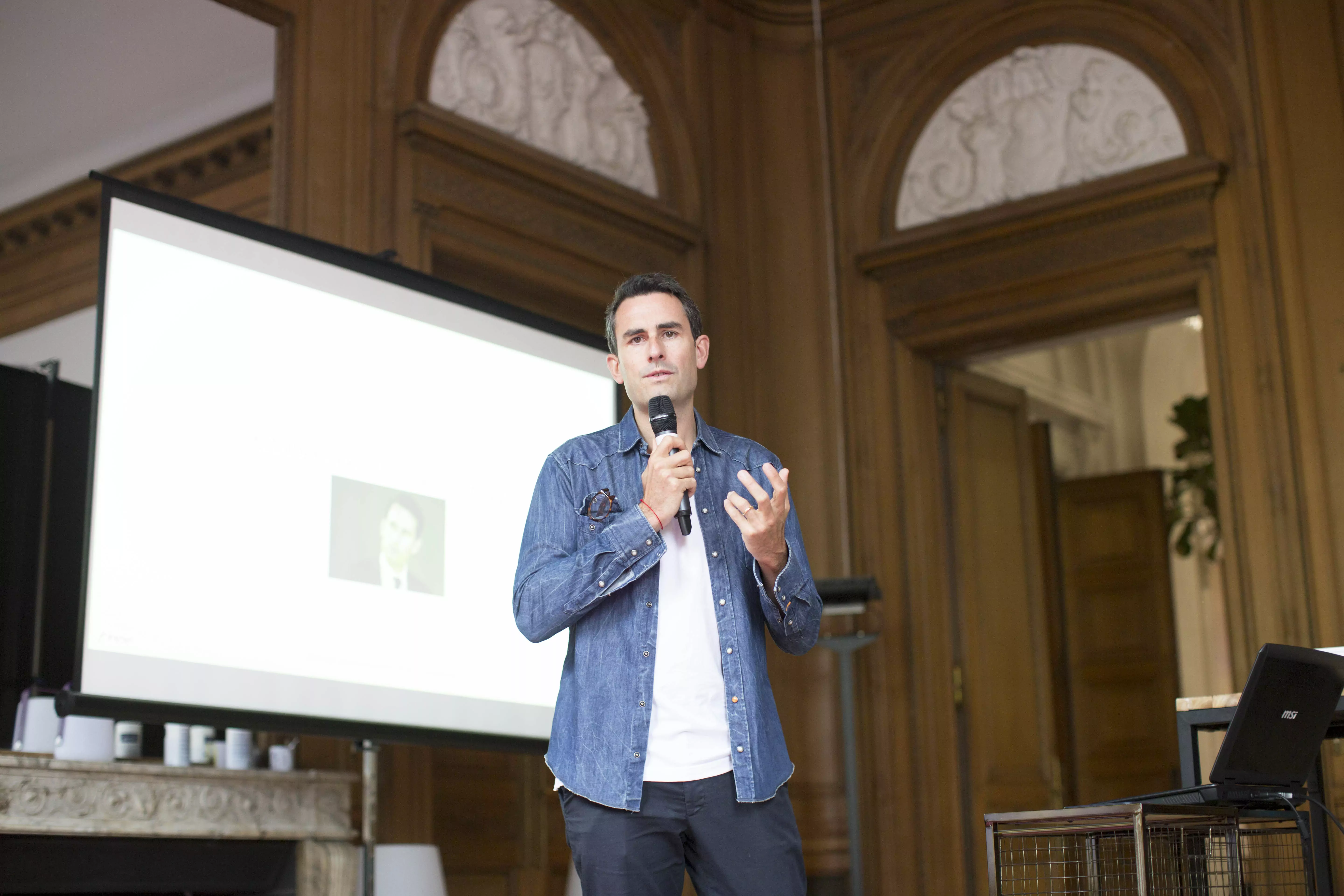 Thomas Reynaud, DG d’Iliad lors de la convention Free, samedi 9 juin. (Photo : Mathilde Ciret)