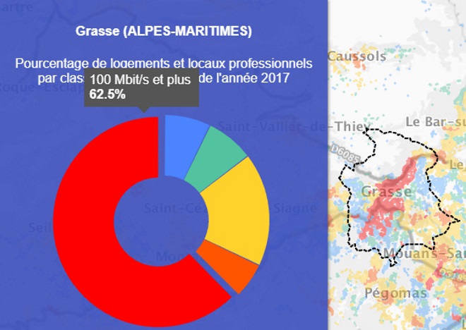Grâce à la première carte on peut voir que la ville de Grasse est couverte à 68% par le très haut débit.