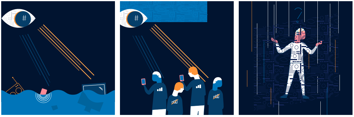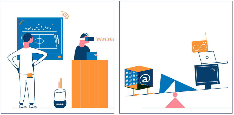 Commençons par le plus dystopique, dans ce scénario les nouveaux acteurs, issus du monde numérique, ont balayé les acteurs traditionnels. Ils contrôlent la fourniture de contenus et une partie de la population, exclue du très haut débit fixe et mobile, n’a accès qu’à des services dégradés. Le contenu est proposé au téléspectateur par les nouveaux acteurs au travers d’algorithmes opaques sur lesquels il ne peut pas agir.