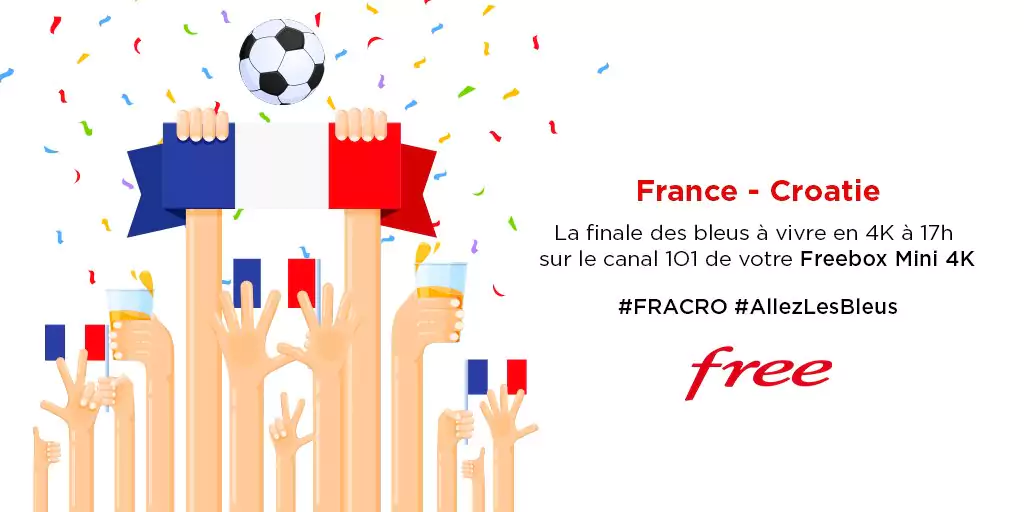 Comme vous le savez, TF1 4K, lancée spécialement pour la Coupe du Monde FIFA, est disponible sur la canal 101 de la Freebox Mini 4K. Cette chaîne diffuse uniquement les matchs de TF1 en 4K, ainsi que la magazine qui suit . Le reste du temps, il n’y a qu’une bande annonce qui tourne en boucle. Mais Free annonce sur Twitter qu’en cas de victoire de la France la diffusion continuera pendant la soirée afin de prolonger l’expérience 4K.