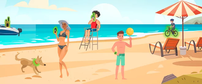 Dans la continuité de "La maison ANFR" qui concernait les objets du quotidien, "La plage ANFR" vous permet de découvrir de manière amusante au travers d’une animation interactive quels sont les niveaux d’exposition aux ondes à proximité de vous lorsque, les doigts de pieds en éventail, vous sirotez votre mojito profitant de vos vacances bien méritées sur une plage ensoleillée.