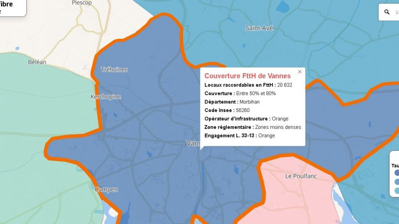 Pour rappel, en ligne avec sa démarche de transparence, le gendarme des télécoms a lancé en décembre dernier cette carte de suivi des déploiements de la fibre sur tout le territoire. Grâce à cet outil, il est possible de savoir avec davantage de précision si vous pouvez avoir accès à l’internet très haut débit par la fibre optique (FttH). La carte, consultable à l’adresse suivante cartefibre.arcep.fr, est depuis alimentée par les données recueillies en open data chaque trimestre. On peut, pour les plus grandes agglomérations, voir les taux de locaux raccordables ainsi que les opérateurs d’infrastructures en charge des travaux. Le périmètre s’est également élargi en juin dernier, les utilisateurs peuvent visualiser les zones arrières de point de mutualisation et ainsi suivre de façon plus précise l’avancée des déploiements FttH. Sont stipulés également le nombre de locaux total de la zone et le nombre de locaux raccordables.