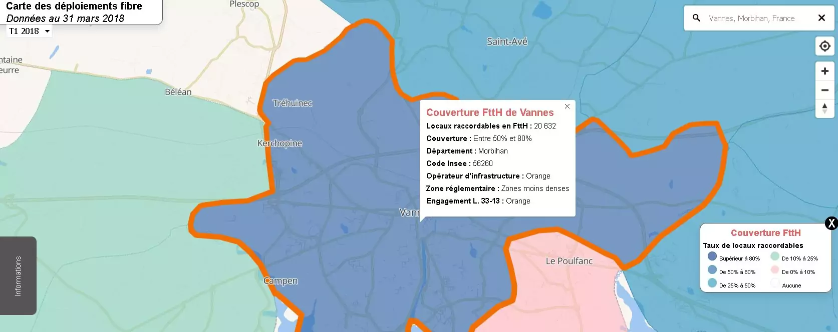 Pour rappel, en ligne avec sa démarche de transparence, le gendarme des télécoms a lancé en décembre dernier cette carte de suivi des déploiements de la fibre sur tout le territoire. Grâce à cet outil, il est possible de savoir avec davantage de précision si vous pouvez avoir accès à l’internet très haut débit par la fibre optique (FttH). La carte, consultable à l’adresse suivante cartefibre.arcep.fr, est depuis alimentée par les données recueillies en open data chaque trimestre. On peut, pour les plus grandes agglomérations, voir les taux de locaux raccordables ainsi que les opérateurs d’infrastructures en charge des travaux. Le périmètre s’est également élargi en juin dernier, les utilisateurs peuvent visualiser les zones arrières de point de mutualisation et ainsi suivre de façon plus précise l’avancée des déploiements FttH. Sont stipulés également le nombre de locaux total de la zone et le nombre de locaux raccordables.