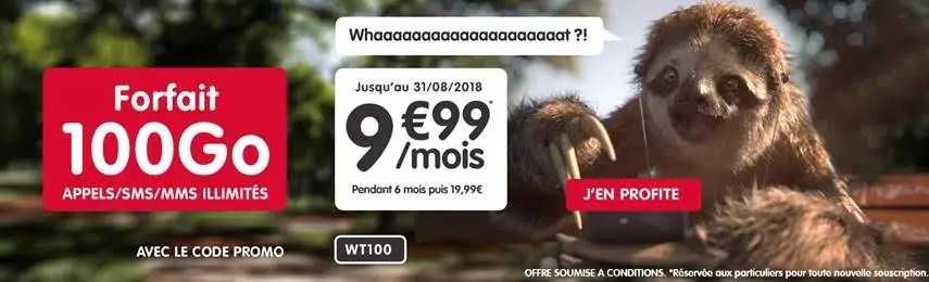 Depuis ce jeudi, et jusqu’au 31 août, NRJ Mobile propose son forfait 100 Go au tarif de 9.99 € par mois. Toutefois cette promotion n’est valable que durant 6 mois, et non durant 1 an comme c’est souvent le cas. Au delà, le tarif passe à 19,99€/mois.