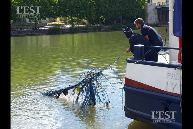 Et ce n’était pas une mince affaire comme le rapporte l’Est Républicain "des bouées de relevage étaient fixées à l’amas immergé dans l’espoir de le décoller du fond afin de le remonter sur la berge. Une manœuvre doublée d’une traction à l’aide d’un tire-fort de VNF et qui promettait encore quelques heures de combat".