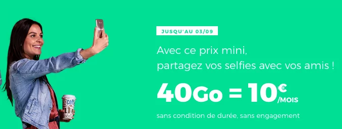 Alors que l’opérateur low cost de SFR a prolongé jusqu’au 24 septembre son offre à 15 euros/mois qui comprend appels, SMS/MMS illimités, 60 Go en 4G depuis la France + 15 Go/mois en roaming depuis l’Union Européenne/DOM, la Suisse, Andorre ainsi que les USA et le Canada, il lance une nouvelle offre.