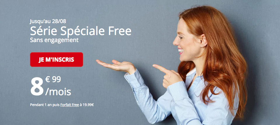 Prévue jusqu’à hier au soir, la "série spéciale Free" proposée sur le site internet de Free Mobile est prolongée de quelques jours. Elle est encore disponible jusqu’au 28 août prochain.