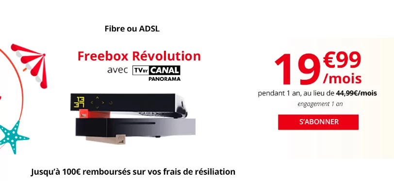 En ce qui concerne la Freebox Révolution, l’offre Freebox Révolution avec TV by Canal historique est disponible sur le site Vente Privée jusqu’au 24 août à 9,99€/mois durant 1 an.