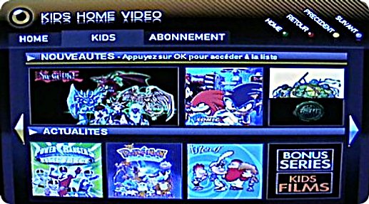 La catégorie "Kids" intègre une cinquantaine d’épisodes de séries telles que Oggy et les cafards, les Pokémons ou encore Titeuf ou Yo Gi Ho