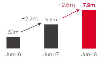 Concernant le nombre d’abonnés fibre, et en tant que premier opérateur alternatif de FTTH Free compte 734 000 abonnés et est en ligne avec ses prévisions de 300-500k nouveaux FTTH abonnés en 2018. Son objectif est de 1 million d’abonnés d’ici au début de 2019