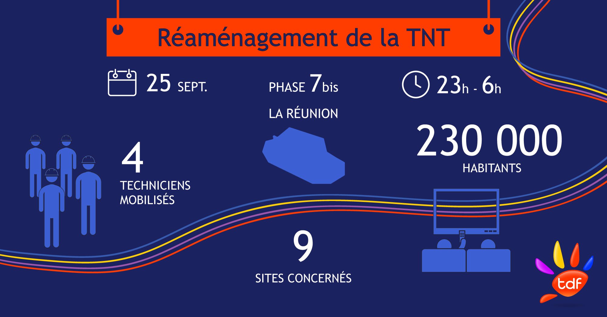 Le transfert de la bande 700 MHz implique, dans un premier temps, une évolution de la norme de diffusion de la TNT. Quinze phases de réaménagement s’échelonnent ainsi jusqu’en juin 2019. La Nouvelle-Aquitaine, la Provence-Alpes-Côte-d’Azur, une partie de l’Occitanie, l’ouest des Pays de la Loire, le Grand Est, la Bourgogne-Franche-Comté et la région Auvergne-Rhône-Alpes ont déjà connu les réaménagements de la TNT ; de même que l’Île-de-France, en avril 2016, au moment du passage à la TNT Haute définition.