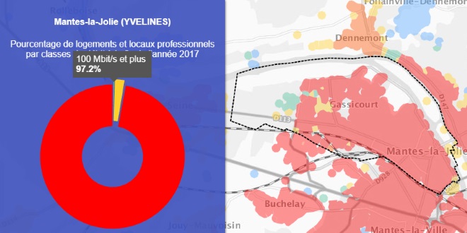 Aujourd’hui, grâce aux données fournis par l’Observatoire France Très Haut Débit, nous vous proposons de découvrir le déploiement du très haut débit pour tous les opérateurs sur la 152ème ville la plus peuplée de France : Mantes-la-Jolie.